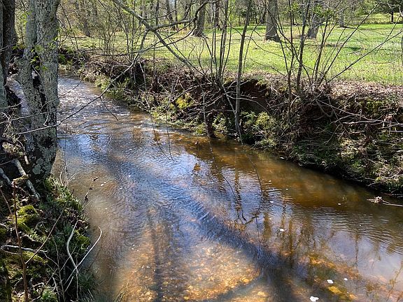 Cute 1560 Sq ft home on large 1.10 Acre lot with a nice creek in the rear of the lot. Large kitchen and large living room and fireplace. Brand new HVAC and new flooring in some of the rooms. Zoned bedrooms. Large master bedroom with large closet and large bath with shower and garden tub. Pantry and large utility room. Washer, dryer and refrigerator remain. Two car detached garage. Fiber internet ( Ben Lomand) New front deck and no city taxes! Home is not in a flood zone. TV remains.