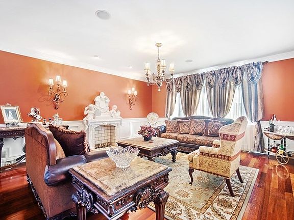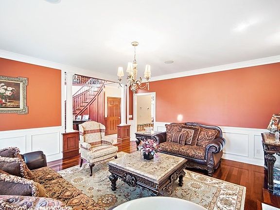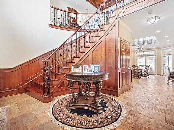 Nothing missing in this Stunning Brick colonial with unbelievable attention to detail throughout this builders home. Grand foyer with curved staircase open to second floor with Brazilian cherry wainscoting and beamed ceiling welcomes you. Living room off foyer has fireplace with detailed marble mantel continued wainscoting, crown molding and cherry floors. Chef's kitchen opens to spacious dining area open to 2nd floor hall and family room. Sun room off kitchen with access to patio. Master bedroom suite off family room with sitting room, his/her and cedar walk in closets, bedroom, and ensuite with access to patio/hot tub area, steam shower for 2, Jacuzzi & more. 2nd floor has 3 bedrooms each with full bath and walk in closets, office with deck, walk up to attic and bonus room. Curved stairway to basement offers sound proof Theatre room, Wine cellar, Sitting room, Game room with fireplace and wet bar. Surround sound in all rooms, CV, security, in ground pool, shed & much, much more.