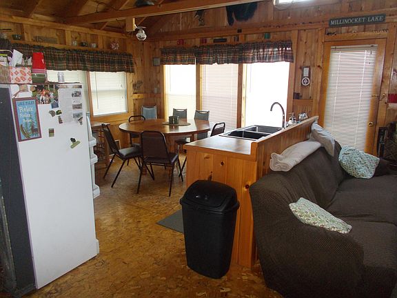 This camp is located on the end of a peninsula on Millinocket Lake with a spectacular view of Mount Katahdin. Property includes a fully-furnished main camp with 2 bedrooms and a sleeping loft, open floor plan for the kitchen and living area. The camp has gas appliances including hot water, is wired for a generator, and has both a full bath and a privy. The property also includes a smaller guest cabin. There is a dock at the lake and a fire pit area all on a one-acre owned lot (no lease).Millinocket Lake supports both cold water and warm water species. Excellent lake trout, salmon, and cusk fishing as well as very large white perch and chain pickerel. Sandy Stream is the main tributary and since it originates high in Baxter State Park, the crystal clear water stays cold all summer and has excellent brook trout and salmon fishing. Millinocket Stream is the outlet and offers great salmon and brook trout fishing especially in spring and fall.