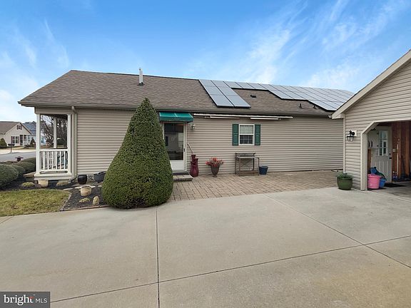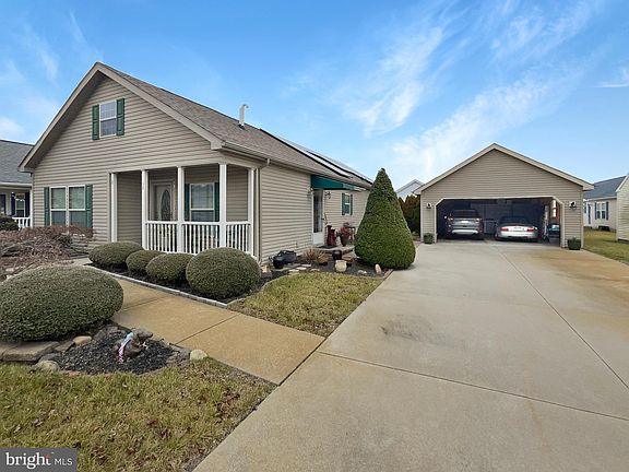 Welcome home to 72 Reagan Court! This is the one you've been waiting for! This single story home in the private Liberty Village Community has everything you would ever need. Sitting at a spacious 1680 square feet, this 3 bedroom, 2 full bathroom home with a detached two-car garage and stand-up attic is one of the larger models in this community. The home has been well taken care of and upgraded over the course of time. As you first walk up the spacious driveway you will notice the large two-car garage with patio walkway, outfitted with extra storage shelving and cabinetry. To the left you will see the side entrance to the home along with an electric awning for shading the screen door. Moving inside the home through the side entrance you will enter into the kitchen area, equipped with stainless steel appliances and large enough to accommodate any kind of meal preparation you can imagine while remaining reasonably small so you don't have too much cleaning afterward. To the left of the kitchen you will find a large laundry room with a window that lets in beautiful natural lighting. Moving forward through the home you will enter into the formal dining area, boasting even more counterspace with many different uses, including extra food during dinner or space for storage. To the left of the dining area is the open living/family room, which opens up to the front entryway of the home and has plenty of windows for great lighting. Down the hallway of the home you will notice the first full bathroom to your right as well as the first bedroom to your left. Down the hall and to the left you will find the second bedroom, which offers lots of space and a walk-in closet. This room is currently set up as an office space and could certainly continue to be used how you see fit. At the back of the home you will find the primary suite, which includes a double sink bathroom with stall shower as well as a huge walk-in closet. Finally, as you move back through the home into the main entertainment area, you will find a door leading to the full, stand-up attic space that goes the length of the home, perfect for all of the storage items you will need. This property is a rare 3 bedroom to come on the market in Liberty Village, which makes it uniquely possible to entertain family and friends in a comfortable space. The 55+ community is quiet, gated, and pet friendly, includes all exterior lawn care including snow removal, as well as clubhouse access. The HOA fee includes taxes, water, sewer, and all of the benefits previously mentioned. All buyers must get approved by Hometown America prior to purchase. This is your chance to own your little piece of calm and peace in retirement!