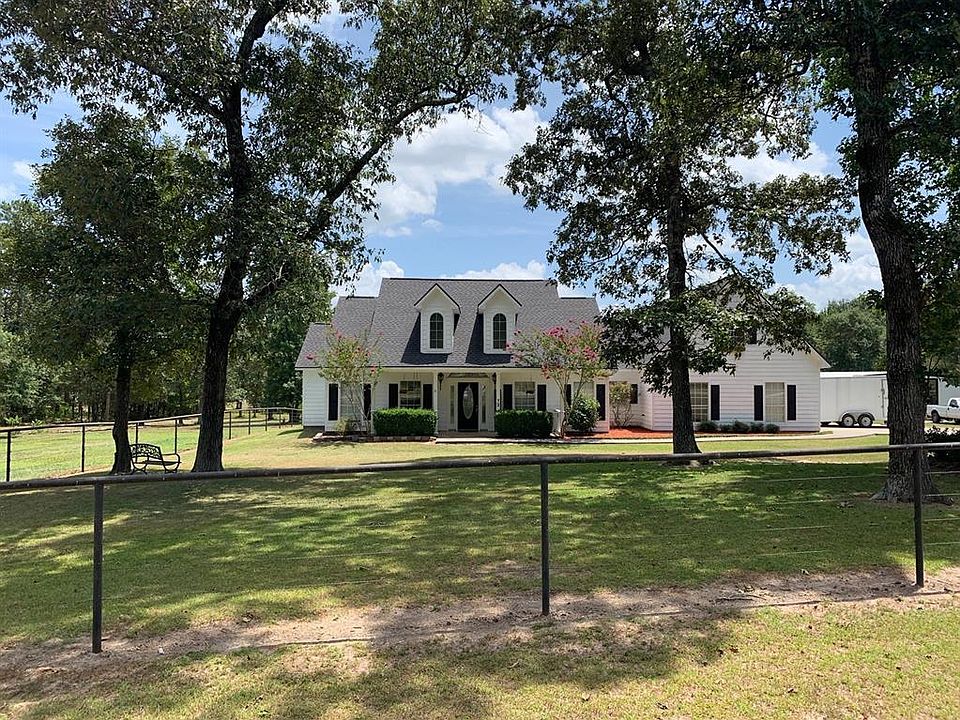 Picture perfect 4br, 2.5 bath home on 10.5 beautiful acs. Pipe fence and gated entrance into this great property. Features separate office and living area with back wall of windows looking over gorgeous acreage with deer and other wildlife. Kitchen with stainless appliances, split bedroom arrangement. Large master with builtins and nice walkin closet. Separate shower and jetted tub in master bath.All extra bedrooms are good size with builtins in too. Hall bath has double sinks. Big game room or guest area is upstairs. Go out the back door to a wonderful partially covered deck. 40x60 4 stall barn, tack room & wash area. Roping arena and round pen.Fully fenced with stock tank. 1 ac on west side not fenced.