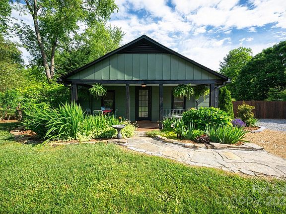 Welcome to this sweet Southern-exposure starter home or investment opportunity with a huge yard. Enjoy great outdoor entertaining in the side yard and level, fully fenced backyard. Potential for lot subdivision—buyer to confirm—or build in back for added privacy. Beautifully landscaped with summer blooms. This charming one-level 1924 bungalow features two large bedrooms and two bonus rooms perfect for offices. The light-filled living room showcases original hardwood floors. An inviting eat-in kitchen opens to a private gravel side yard with a cozy fire pit area. A sunny office off the kitchen is ideal for working from home. Plenty of off-street parking, including room for an RV. The stone-wall basement is great for bike and boat storage, and the large shed offers excellent workshop or storage space. Back of lot has tons of sun great for gardening. Great south Asheville location just minutes to the Blue Ridge Parkway, shopping, restaurants and 15 minutes from downtown Asheville.