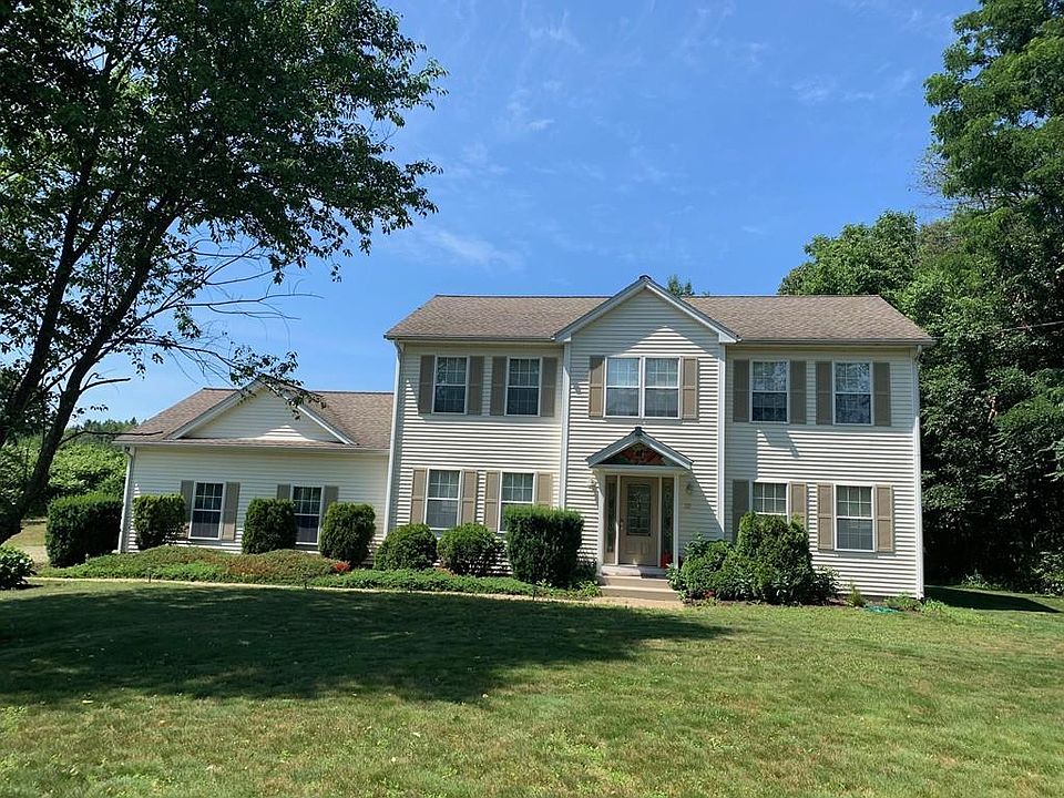 Lovely, south facing Colonial in Birchmeadow Development, set back from road on large, 1.19 acre lot. 2104 sq. ft. comprise formal living room & dining room, kitchen, family room w/ gas fireplace & 1/2 bath plus 2 car garage. 2nd floor: master bedroom w/ bath, 3 bedrooms & 1 bath. Amenities include: Ash & pergo floors, kitchen w/ slider to backyard wonderland, a site for all manner of family activities. Perks of Hadley: low taxes, close to Amherst or Northampton, mall, etc. shopping district.