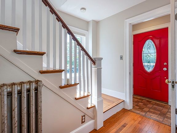 City convenience seamlessly blended with suburban living. This comfortable 3+ BR has abundant natural light & beautiful oak floors throughout. Recent updates to interior (kitchen, bathroom, & 3rd floor bonus rm) & exterior (deck, patio, & fence). Main entrance leads to well-sized living room w/ FP and adjacent bonus room perfect for playroom or additional living/dining space. Open concept kitchen and dining area with access to raised back deck, overlooking fenced yard with gardens & patio. Staircase from front entry leads to 3 BR and full bath. Separate stairs up to finished 3rd floor access a bonus room w/ mini split for heat/AC and pull-out couch accommodating office/guest space & storage. Unfinished full basement with walk-out access to back yard provides additional storage. Paved driveway and public street parking. 200 amp electric and leased solar panels. Just minutes to 93 N/S to Boston, bus/public transport, & Middlesex Fells Reservation for hiking, biking, & more!