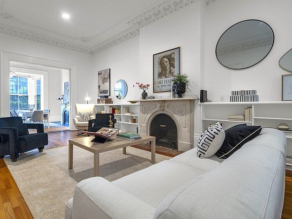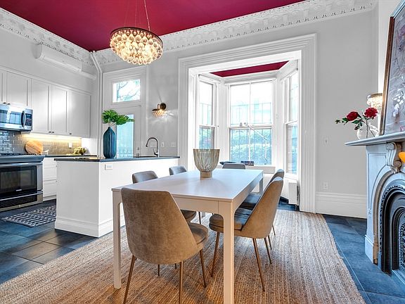 OFFER DEADLINE- 6/17 at 3PM. Stunning grand parlor duplex, where classic Victorian charm meets modern convenience. With 11-foot ceilings and decorative moldings, this home offers an open and airy feel, creating a welcoming atmosphere. The formal living room, a traditional parlor, features large windows, HW floors, built-in bookshelves, and a marble mantle fireplace. Adjacent dining area leads to fully renovated kitchen w/white cabinetry, green/gray counters, tile backsplash, and SS appliances. A chef's dream w/ plenty of storage and counter space. Primary bedroom on the lower level is a spacious retreat with an en-suite bath, ample closets, and direct access to the serene garden patio, ideal for relaxation. A roomy second bedroom, a bonus office, and a beautifully finished full bathroom complete this level. Enjoy outdoor living w/ an elevated deck w/climbing plants, and a sun-drenched private garden patio. Direct access covered parking, laundry, and storage.