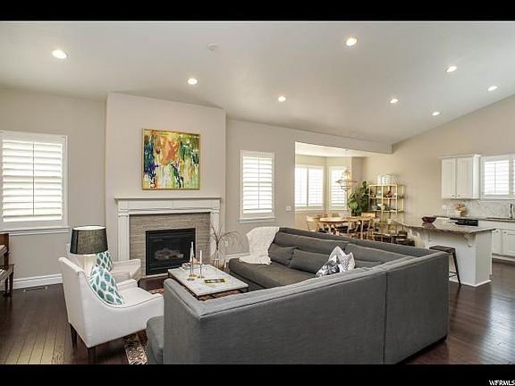 This beautiful Fruit Heights home has it all! Beginning with the gorgeous landscaping and plantation shutters when you pull up. Walk in the house to tall vaulted ceilings, big bright windows in the great room area and 9'ceilings in the bedrooms with grand 8' doors and 6" finish trim throughout. You'll instantly fall in love with the wide open kitchen and white cabinetry, stainless steel appliances, gorgeous granite counter tops and beautiful back splash. Enter the covered Trex deck from both the dining area and the large master suite. The master has a big walk in closet, double sinks, separate tub, shower and toilet room. All the bathroom sinks & cabinets are raised for your comfort. Don't forget about the central vacuum system with a kick sweep in the kitchen. You'll enjoy the huge daylight downstairs family room with game area. The two big bedrooms down are adjoined with a double sink Jack and Jill bathroom. There's a very large room with no windows intended to be the perfect theatre room, just bring your projector and surround sound and you're set! In the back yard there's a large concrete patio area with a fun and exciting pergola that has custom shades that can canopy or drop for shade and a gas rock fireplace to really set the mood for some relaxing evenings watching our beautiful Utah sunsets and enjoying the company of your friends and family...and don't forget about the vinyl fence and large matching shed to keep all your yard tools out of the garage. We could go on and on but you just have to come see this awesome home for yourself! Call me today to schedule an appt to see it!