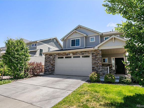Nearly new, move-in ready, spacious, single-family home in the metro for barely more than $500K! Backs to open space. Tons of light. Upgraded hardware, backsplash & stainless appliances including a gourmet fridge & built-in microwave. Big granite island. Walk-in pantry. Vinyl plank flooring. 3 bathrooms. 3 spacious bedrooms. Granite/under-mount sinks in baths. Dedicated laundry room with storage space. Extra-wide garage for even more storage. Additional insulation added to all walls/ceilings for extra energy efficiency & soundproofing. Luxurious master bath features water closet, dual sinks and large walk-in shower with built-in shower seat. West-facing! That means MUCH less snow/ice removal during winter months. Large covered front porch. Spacious, stamped concrete, east-facing back patio (with extended walkway around to the front) and private backyard perfect for afternoon BBQs. Community park with BIG swimming pool along with volleyball, bocce & basketball courts! Just minutes to both I-70 & 470 to quickly get anywhere in the metro. Schedule your showing today!