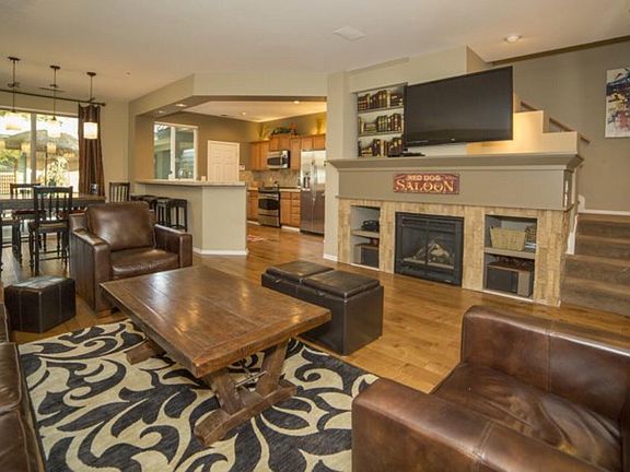 Townhome located above Old Mill. Furnished. Wood flooring first floor. Living room with gas fireplace. Front patio and upper balcony. King master suite w/ large walk in closet. Queen 2nd bedroom w/ private full bath. Large built in desk in upstairs landing. Upper level private balcony opens off landing for enjoying evening sunsets. Kitchen with stainless steel appliances, gas range. Breakfast bar. Pantry. Private cobblestone patio in rear. Covered walkway to 2 car garage. Laundry room upstairs w/ washer and dryer. $2300/mo plus utilities. Less than one year available at 2500-2800 depending on season. Small dog on approval w/ add'l deposit. Tenants currently occupying unit. Text or call for viewing appt.