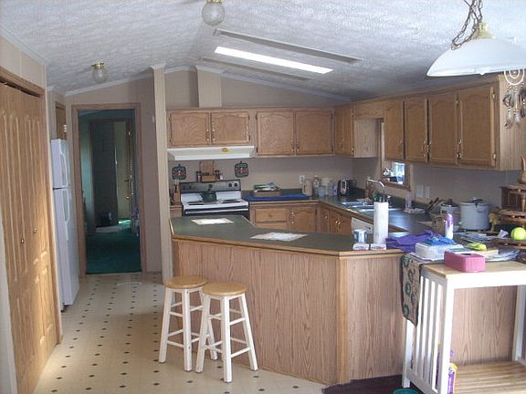 Home is a 16x76 single wide in good conditionon a nice lot just outside the Village of Malone. Extensive oak kitchen cabinets and island area in kitchen. Large double sink and garden tub in master bathroom. Vaulted ceilings threw home. Seperate laundry area. Wood Stove hook up. Patio doors leading to large front deck. Large 24x24 shed. Large lot with great yard for children and animals.