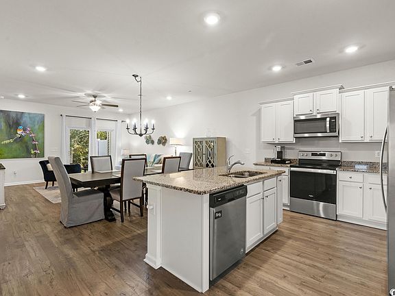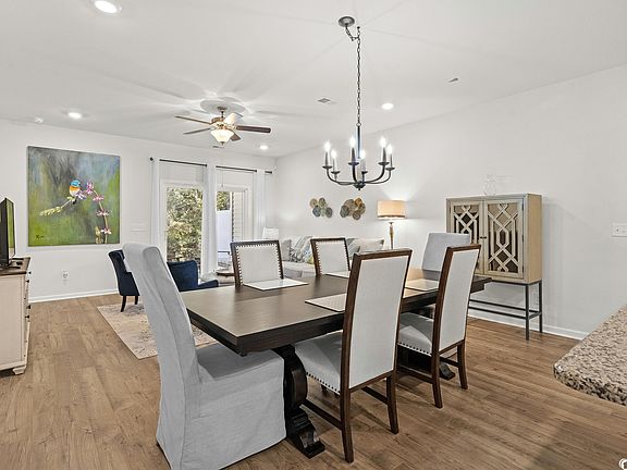 Welcome to easy living! This one-level smart technology townhome is located less than ½ mile from the Murrells Inlet Marshwalk—the seafood capital of South Carolina—offering a vast array of dining options and entertainment venues. Built in 2021, this 3 bed, 2 bath end unit features an open floor plan that seamlessly connects the living room, dining area, and kitchen with LVP wood flooring creating a positive flow. The kitchen features generous cabinet space, granite countertops, stainless steel appliances and an island for additional workspace or casual dining. Just beyond lies a dining area and main living with sliding glass doors allowing natural light to flood the space as well as provide access to a private backyard patio and additional storage room. The spacious primary bedroom en-suite has tiled bathroom, dual vanity, large shower, and custom-built walk-in closet. One of the secondary bedrooms has a custom-built closet. It has one car garage with 2 car depth driveway for extra parking! Schedule your viewing today!
