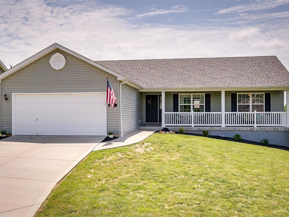 WELCOME HOME TO THIS BEAUTIFUL 3 BEDROOM 2 BATH WALK OUT RANCH HOME WITH OVER 1,380 SQ FT OF LIVING SPACE. LOCATED IN THE HIGHLY SOUGHT AFTER ANNA MEADOWS SUB.. ONLY 5 MINUTES FROM THE WENTZVILLE PARKWAY!! INTERIOR UPGRADES INCLUDE GREATROOM, KITCHEN AND BREAKFAST AREA W/VAULTED CEILINGS. HARDWOOD FLOORS IN GREATROOM, HALLWAY AND ALL BEDROOMS, TILE FLOORS IN KITCHEN, DINING, BATHROOMS AND LAUNDRY RM. DELUXE KITCHEN WITH UPGRADED CABINETS W/CROWN MOLDING, GRANITE COUNTERTOPS, TILE BACKSPLASH, SS APPLIANCES, BREAKFAST BAR AND WALK IN PANTRY. MASTER BEDROOM SUITE W/VAULTED CEILING, HIS & HER CLOSETS, UPGRADED MASTER BATH W/ADULT HEIGHT DOUBLE BOWL VANITY & LARGE SHOWER. MAIN FLOOR LAUNDRY, WHITE 3 PANEL DOORS & 3 TRIM. THE WHOLE BACK SIDE OF THE HOME HAS AN ADDED 2 FT TO ORIGINAL PLANS. THE GARAGE HAS BEEN EXPANDED 4 FT IN DEPTH. WALK OUT BASEMENT WITH EGRESS WINDOW, ROUGH IN AND SUMP PIT W/PUMP. UPGRADED ELEVATION, LARGE COVERED FRONT PORCH & GREAT LOCATION MAKE THIS HOME A MUST SEE!
