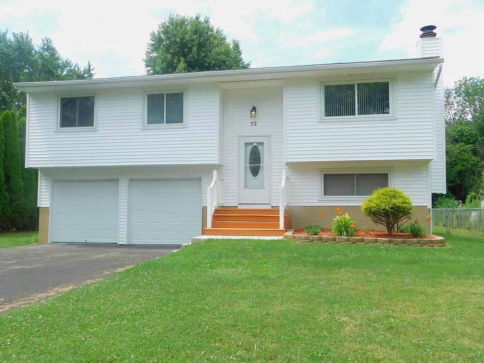 Great offering!! New vinyl siding and roof. New updated kitchen countertops and backslashing. New ceramic flooring Stove ,refrigerator and dishwasher included. New laminate flooring and new carpeting. New remodeled bathrooms. New painting to interior rooms. New furnace, water heater and AC. Sliding door off dining room to spacious deck. Two new garage doors with electric openers. New asphalt binder coat to driveway. Family room with woodburning fireplace and new laminate floor. Newly painted concrete patio .