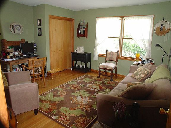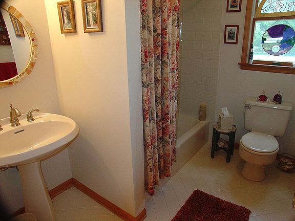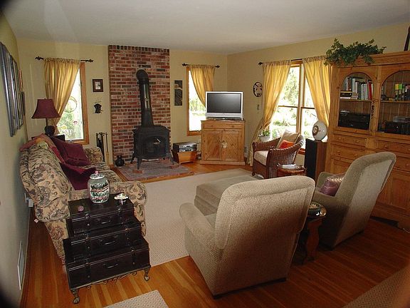 Custom Cape Cod w/full, finished basement, detached 2-car garage w/fin loft, almost 2acres w/perennial gardens, flowering trees, nature paths displaying the artist owner's sculpture, deck and shed, slate walkway to the covered front porch, living rm w/toned walls, a wood-burning stove, mounted on a brick hearth/pad, oak HW flrs, coat closet and stairway to the 2nd level, main hall w/access to the guest suite/3rd BR/den w/full bath and laundry rm, fin basement w/great/rec rm, built-in bookshel...
