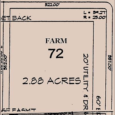 Farm 72 has a rolling terrain that is heavily wooded. It is located at the corner of Summer Oaks Drive and Summer Oaks Cove. Approximately 337' wide by 322' deep, and is situated with quick access to South Slayden Road and Hwy 72. This lot measures a total of 2.88 acres and it is a corner lot. **Please note: the physical address for this lot will not be given until a home is built on the property. Street number '72' is the lot number