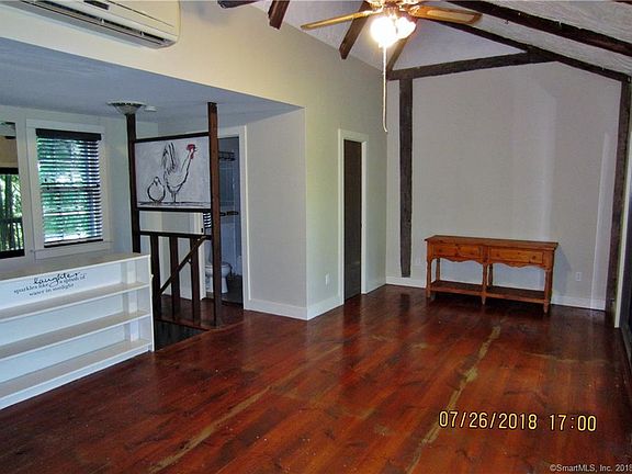 Charming renovated Tobacco Barn on a quiet country road with an inviting deck on main level and patio on lower level overlooking the pond on the property. Straight shot up Route 7 yet minutes to New Milford Town Center and shopping. The main level features the bedroom, office/den, spacious family room with vaulted ceiling, beams, ceiling fan and sliders to deck and an updated full bath with tub/shower. The lower level features the kitchen and large living/dining room area with sliders to the welcoming flagstone patio backyard area. There is an updated half bath with newer stackable washer/dryer on this level. Heating is an energy efficient propane system with on demand hot water. A peaceful and comfortable setting to call home.