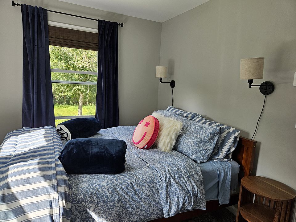 The Bluestone Boho is a safe private, quiet apartment with a queen sized bed, closet space, bathroom with tub, 2 Smart TVs, kitchen, dining area, full size refrigerator, W/D unit, living space, an office or small bedroom with closet space, set on an interior lot with a large backyard. Watch the deer and other wildlife from the deck. Chairs, a table, and umbrellas are included. This completely updated fully furnished apartment includes linens, towels, kitchen supplies, blackout shades, and a cooler for the beach with a beach pass. There is ample parking. The apartment is approximately 2 minutes from I-95 and about 5 minutes from the train station. The rent includes all utilities. There are other spaces on the property occupied by the owner. This property is for mid-term rental situations and can be leased on a month-to-month basis. It is fully furnished and suitable for people who travel for work (nurses, professors, etc.), those waiting to close on a house, and folks recovering from medical procedures who need to be near the hospital/doctor for example. The tenant is to remove trash/garbage/recycling from the apartment to the bins in front of the garage every week. Trash pick up is included in the rent. For those with pets, bag pet waste and dispose of in the garbage bin. For tenants staying more than 30 days, monthly cleaning can be arranged. There is a $100 cleaning fee which is due with the first month's rent. Tenants must notify the landlord of any guests visiting the property and any overnight guests must be pre-approved. There is a limit to the number of guests and parking allowed on the property at any given time. This property is for adults only. No parties. No drugs. Guilford's Quiet Hours are 10 pm to 7 am. Since this property is for mid-term rentals, tenants need to arrange for mail pick up in Guilford at the USPS at 42 Water Street, or at the UPS Store at 800 Village Walk, or at any other preferred location. Be advised that there are wild animals in the vicinity, such as coyotes, and the property is not fenced. Be mindful of your pre-approved pet(s) and/or service animal. While Connecticut has a leash law, the landlord is not responsible for any injury, harm, or the death of any pets leashed or unleashed. The non-refundable fee for a pet is $100.
