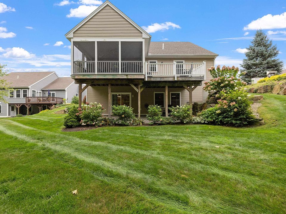 Beautiful Stone Sled Farm 55+ condo just reduced $15,000!. Nicely sited for privacy, this home features seasonal views, a large screen porch & exposed deck with composite decking, gorgeous landscaping and finished walkout lower level. Enjoy 1500+ feet of one level living and an additional 1200+ square feet of finished space in the walkout lower level. Kitchen updates include granite counters and new appliances, and custom built-ins in the cozy living room with gas fireplace. The HOA fee covers the roof, landscape, snow removal, trash and septic. Enjoy maintenance free living in this private community with mountain views and walking trails. Shown by appointment only.