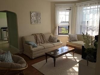 Top floor sunny, bright, and spacious 2 bedroom apartment for rent. Hardwood floors throughout, eat-in kitchen, beautiful bay windows in living room, big windows in bedrooms, and lots of storage space. Excellent location on a quiet street in the heart of Cleveland Circle, walking distance to the T; B, C, AND D lines. Walking distance to numerous restaurants, bars, and Chestnut Hill reservoir as well as Brookline's Washington Square. Heat and hot water INCLUDED. Laundry in building.