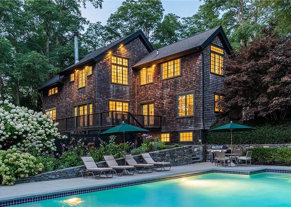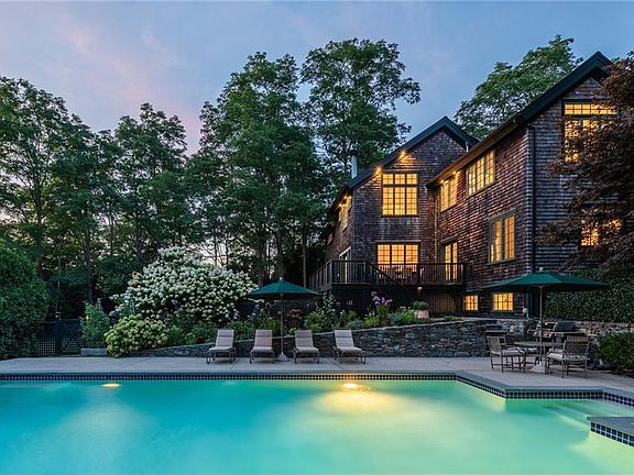 Newly renovated shingle-style coastal home abutting conservation land, privately situated in a coveted quiet enclave off desirable Indian Avenue. Just minutes from Second & Third Beaches, Sachuest Point, Sweet Berry Farm, and a scenic pebble beach, this setting offers both seclusion and convenience. Sun-drenched rooms, large windows, and convivial living spaces that overlook an outdoor oasis of mature plantings, a wraparound deck for al fresco dining and a gorgeous Gunite pool for entertaining surrounded by hedges and stunning gardens. Thoughtfully designed with 4 bedrooms and 4 full baths across three levels. The main floor features an open kitchen/dining/living area with wood-burning fireplace, full bath, and queen guest bedroom. Upstairs boasts tall ceilings with an oversized primary suite with shower, whirlpool tub, and walk-in closet. Plus two additional bedrooms (one with queen bed, the other with two fulls), a shared bath, and laundry. The lower level features a TV lounge, full bath, and 3-car garage. Modern amenities include central A/C, whole-house generator, whole-house water filtration, robotic pool vacuum. A gardener’s dream with greenhouse, cedar raised beds, blueberry cage, specimen trees and hydrangeas galore. All just minutes to downtown Newport and Middletown shopping. Location, location—close to everything, yet tucked away from the hustle and bustle.