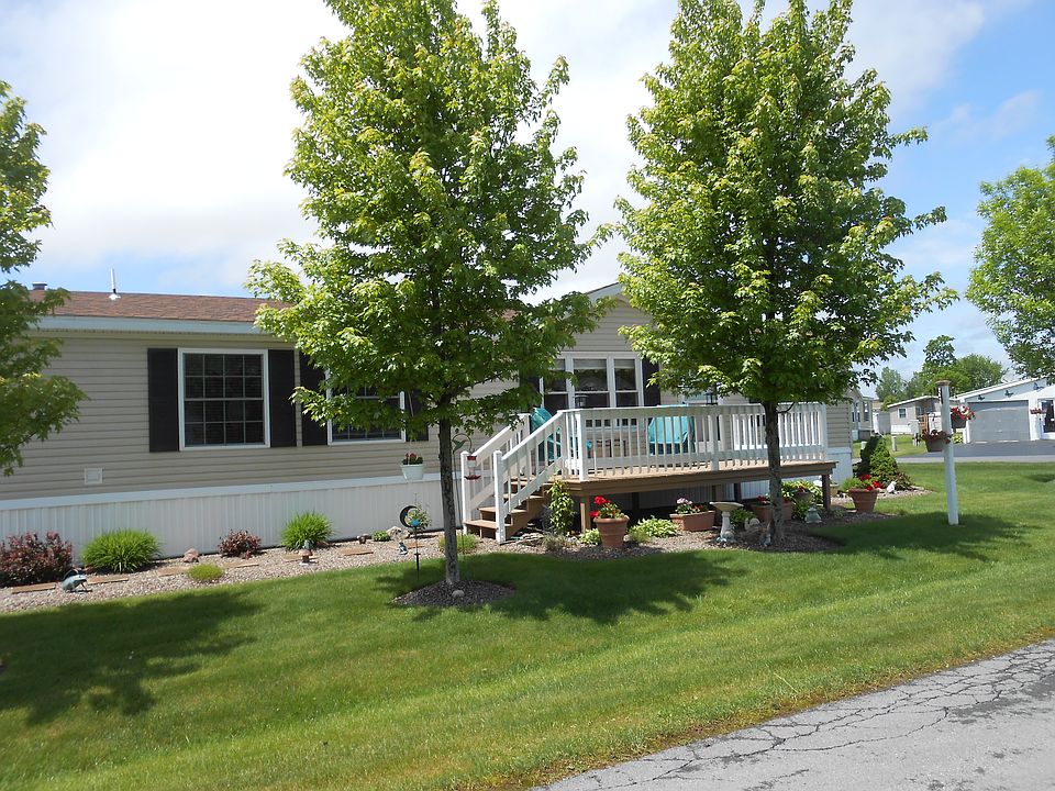 28 X 60 Double wide in a senior park with gas furnace and central air. Laminate in LR DR and kitchen. Laundry off the kitchen. Furnace rated gas fire stove in the LR. Tile in both updated baths. Master suite with office or sitting room. Front Deck, back deck with adjoining patio and covered side porch. New roof, double-hung tip-in windows, skylights and patio door. Site has city water, sewer and natural gas. Lot rent includes water and trash pick up. Appliances and window treatments included. Nicely landscaped private lot.