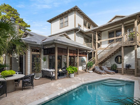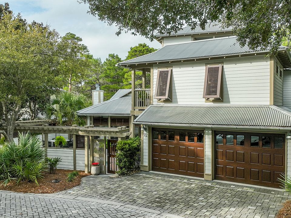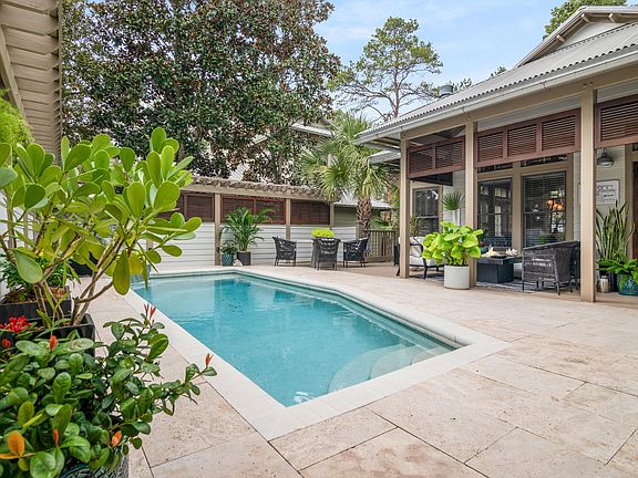 What an incredible opportunity to own a BEAUTIFUL HIDDEN GEM! These homes do not come available very often and this one has it all. This beautifully renovated 4 bedroom home is located in the gated community of Summer Ridge. Its comes complete with a carriage house, 2-car garage, and a heated pool. Upon entering the private courtyard you will be greeted with a serene ambiance of the pool, new shell stone patio, Fire table, and privacy. Enter through through the double coffee stained wood and glass doors and you will find a vaulted wood beamed ceiling, gorgeous windows, and wood floors. The Great Room is open to the kitchen and dining areas for maximum spaciousness. The kitchen is delightful with a gas stove, french door refrigerator, microwave and a built in ice maker. Make your way down the hall where you'll find a laundry room, powder room, and First floor Primary bedroom with double walk in custom closets. The Primary bath has been remodeled as well. There's a separate water closet, walk in shower, double vanity with plenty of storage and an original cast iron soaking tub. This is the ultimate if you've ever had the privilege to experience one of these. Ascend the staircase and you'll find two spacious bedrooms that share a hall bath. Both bedrooms have access to the covered porch where you can see the pool and court yard. Ascend the stairs once again and you will be greeted to a bonus room complete with a wet bar and private covered porch. This room is currently used for entertainment, however it could be an office, workout room, or artist's studio. Once back in the courtyard, the stairs take you to the carriage house where there is a delightfully private guest quarters completed with full bathroom and guest closet. Summer Ridge is very special and this home exudes tranquility and yet you are near 3 Beach Accesses, wonderful restaurants, and shopping. This is the ultimate in 30A Living. Short term rentals are restricted in this community.