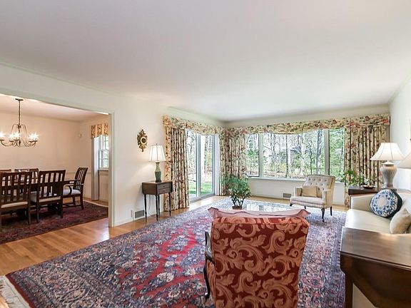 LOCATION LOCATION! Curb appeal in this lovingly maintained ranch. Well proportioned rooms throughout. Entry foyer opens into large living room with hardwood floors, picture window with views to rear yard and slider to patio. Formal dining room with hardwood floors and built-in china cabinets. Kitchen with eat-in area, Corian countertops and laundry. Family room with wood burning fire place, hardwood floors and sliding door to patio. First floor laundry. Master bedroom with hardwood floors and bath. Two additional bedrooms all with hardwood floors. Partially finished basement. Roof stripped and replaced 2011. Forced warm air furnace new 2016 . Large lot with lovely gardens.