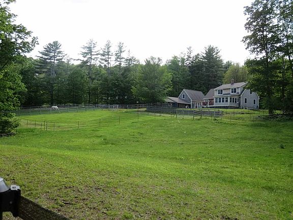 Horse lovers take note! This nicely maintained custom built Cape is situated on 17 acres (double 8+ acre lots) of pastures, lawns and woodland. Sited well off the road, this 10 room, 3-4 bedroom home features first floor master suite; open kitchen, dining, living area; 1st floor laundry; a beautiful sunroom overlooking the private acreage, pastures, and plentiful wildlife; a large deck off the sunroom. An oversized 2 car detached garage has tons of storage above (in-law possibilities), attached barn, with 2 stalls for your horses, leading to fenced grazing pastures and paddock area; a separate 60x110 riding ring. The home is generator ready; there is potential for subdividing. Only a mile to Bow Lake, yet convenient to Route 4, and in the Coe-Brown school district. A special haven for anyone looking for peace and quiet! A must see!