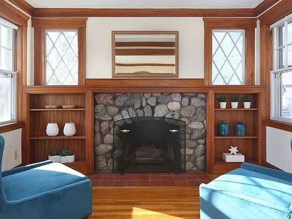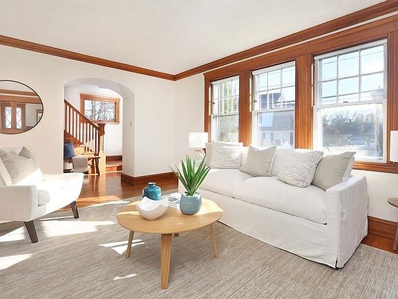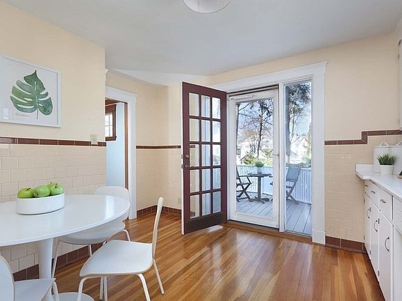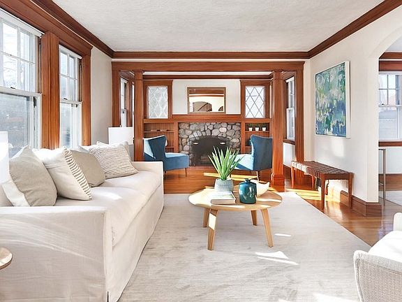 Located on a pretty street on Bellevue Hill, this bright and welcoming seven room residence offers over 1,540 square feet of living space. Built in 1920, the interior exhibits lovely detail typical of the period. The main level features a living room with a stone fireplace flanked with built-ins, handsome woodwork, and an archway into the elegant dining room; and a spacious eat-in kitchen with a door opening to a wonderful deck overlooking the yard. The second level contains three good-sized bedrooms. Beautiful hardwood floors can be found throughout. There is ample parking with a driveway and garage.