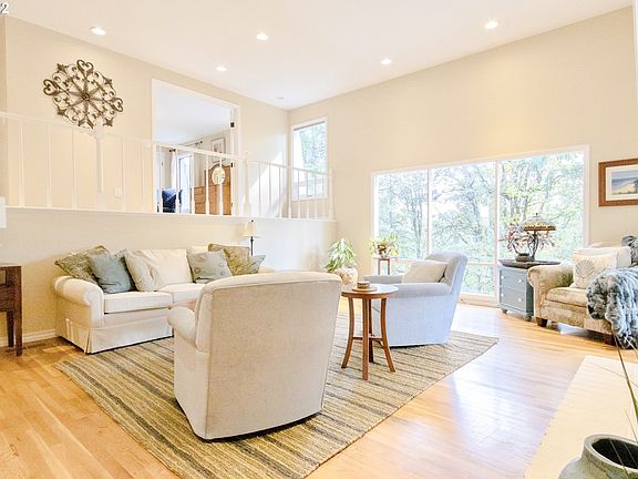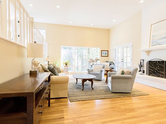 Gracious Lake Oswego home in desirable Mtn Park boasting over 3900 sf of expansive yet defined spaces&high-end features!Lofty ceilings&walls of windows give way to tasteful finishes incl wood flrs,lvng rm w/stunning gas frplce&French doors to cvrd balcony,perfect yr rnd!Light,bright&peaceful find neutral tones,spacious rms&tasteful updates throughout w/charming yrd amongst mature trees&low mntnce lndscpng.Plus new roof,driveway,windows&perfect proximity to LOs great parks,trails,school&shops!