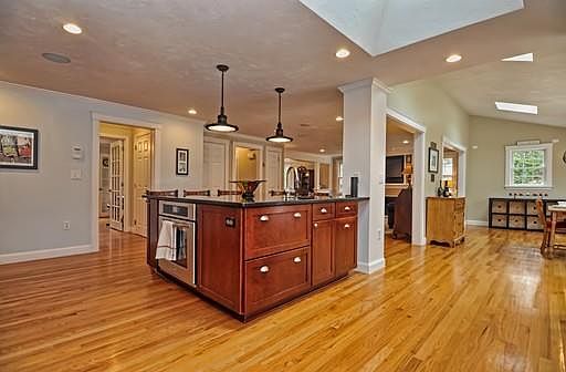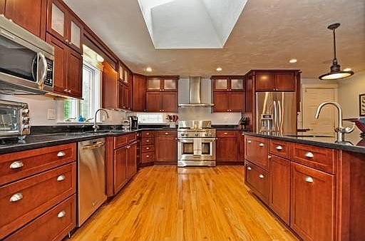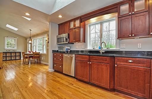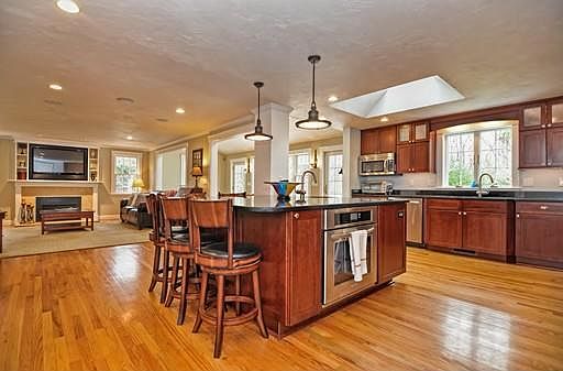 This stunning colonial reflects an uncompromising dedication to excellence. Preparing meals is a pleasure in this kitchen. Top of the line appliances including a 4-speed range hood. Stunning over-sized granite island w/sink, baker assist steam oven & seating for 5. Breakfast nook w/skylights. Bright, sunny and open floor plan. The kitchen flows flawlessly into the family room w/ a custom travertine-faced gas fireplace & a beautiful mantel with built-ins. Crown molding w/picture book paneling. Four bedrooms w/gleaming hardwood floors, overhead lights, spacious rooms, and laundry conveniently located on the second floor. Exterior offers a magnificent spacious fenced yard w/2 tier Trex deck, custom stone patio, shed, rock walls, sprinkler system, outdoor speakers w/whole house indoor/outdoor Sonos, external WiFi, alarm system, flowering trees, fruit trees, and perennials. Two car garage w/built-in cabinets, and workshop area in the basement. Perfect for the discriminating buyer.
