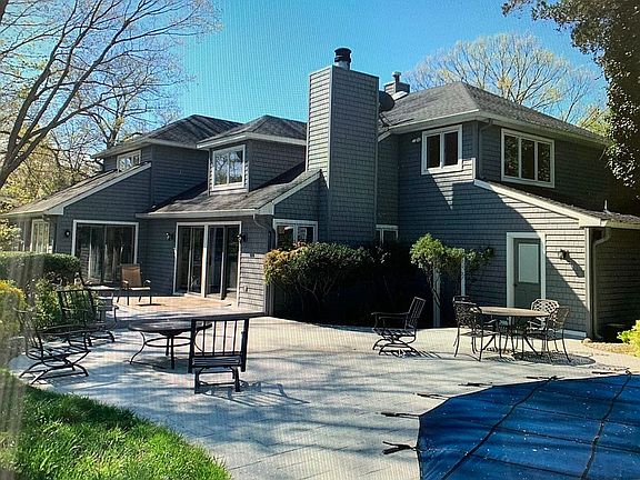 Gorgeous, unique property on a quiet cul de sac with a pool,hot tub and wonderful view of Shippee's Pond. Skylights and new windows provide tons of natural light. This home is perfect for a growing family with 4 generous sized bedrooms and 3 full baths. The first floor den can also be used as a 5th bedroom or office. This 2 story homes offers a great flow and is perfect for entertaining, Rooms include large living room and dining room, eat in kitchen with access to lovely screened in porch over looking the pond, family room with fireplace and sliders leading to outside entertaining area. Bonus bathroom and shower for outside pool area. Partially finished basement great for a play room or man cave! Take advantage of easy commute to NYC via ferry or train and top notch schools!