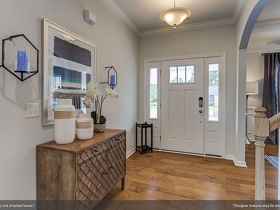 This is a gorgeous craftsman-style home with the primary suite on the main level. Luxury vinyl plank floors run throughout the open living areas downstairs. The gourmet kitchen features arched entryway, seven-foot island with pendant lights, gas cooktop, built-in oven/microwave combo, white cabinets with soft-close feature, "Cotton White" granite countertops, tile backsplash, pantry, and recessed lights. The primary suite offers a private alcove entry, tray ceiling, enormous tile shower, (split) double bowl vanities, white cabinets, quartz countertops, spacious walk-in closet, and separate water closet. The great room is highlighted by the beam detail in the ceiling, crown molding and gas fireplace. Hardwood stairs lead to generously-sized bedrooms two and three on the second floor and a huge loft, perfect for a game room and audio/visual area. There is also walk-in attic storage and a 16 x 10 covered porch.