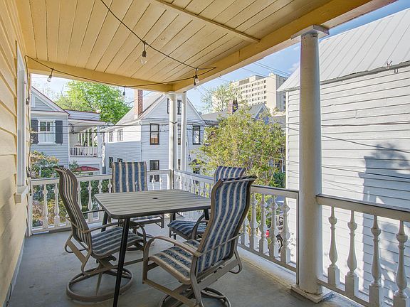 Historic circa-1895 Charleston single in prime downtown location! Situated just a couple of blocks from CofC & MUSC and less than a mile from King Street, this 3 bed/2.5 bath home has great curb appeal with a newly painted exterior, metal roof, full-length lower and upper level covered piazzas, and plenty of off-street parking. This home provides all of the comfort and conveniences of a modern home while maintaining its historic charm and integrity. Upon entering you will immediately notice the hardwood flooring and 10' ceilings that flow throughout the entire home. The first floor boasts a spacious eat-in kitchen with granite countertops, a gas stove (less than 5 years old), a new fridge, tons of cabinet/storage space, and the original exposed brick fireplace. The first floor alsoincludes a large living room with an exposed brick fireplace, a combined powder/laundry room (washer/dryer will convey), and a spacious bedroom with exposed brick fireplace. The 2nd floor opens up to a sitting room with an exposed brick fireplace and access to the upper-level covered piazza. Off of the sitting room is the primary suite with a walk-in closet and a private ensuite bathroom complete with dual sinks, a garden tub, and a walk-in shower. The generously-sized third bedroom is on the opposite side of the home and features dual closets and is positioned next to the 3rd bathroom with a corner shower. Whether you enjoy this home as a primary residence, vacation home, or investment property (with nearly a decade of uninterrupted long-term leases), this is a great opportunity to own in one of the Peninsula's most desirable areas! Schedule a showing today!