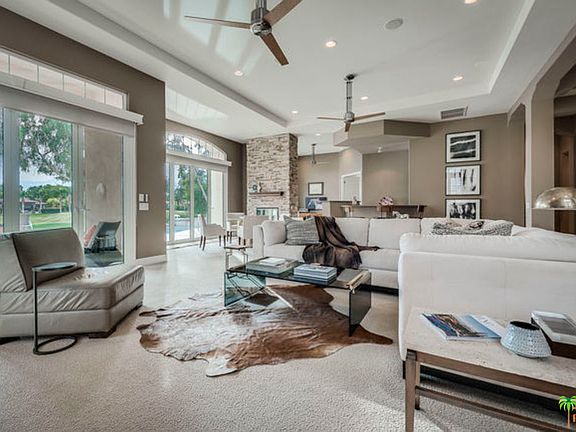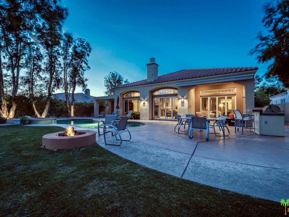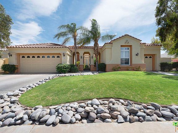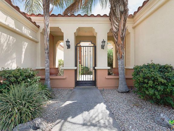 Enjoy gorgeous South views in guard gated Mira Vista! This stunning Sienna model has numerous upgrades, a detached casita and 3,765 SF of Contemporary living space with 4BD/4.5BA. Overlooking the 17th fairway of the Gary Player course in Rancho Mirage, there are unobstructed views from the inviting pool, spa and outdoor kitchen. Enter the home via a lovely gated courtyard and into the large great room with limestone floors, a wet bar, double-sided fireplace, and formal dining with accordion French doors that open up to enjoy those amazing views from indoors. The gourmet kitchen also has a large informal dining area, so cooking and entertaining are a breeze. The attached casita features many built-ins, microwave and refrigerator for the ultimate in guest convenience. In addition, the home offers a 2+golf cart garage and pre-paid Solar lease to 2032!
