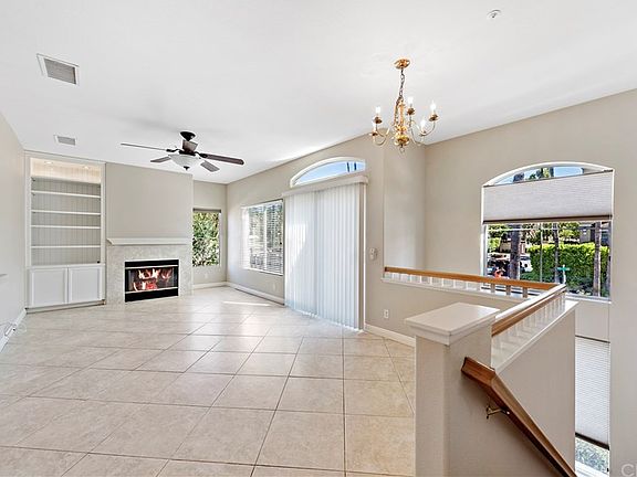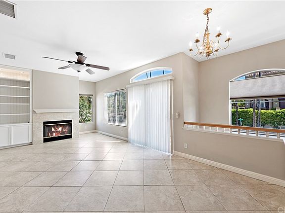 Fantastic location in Rancho Santa Margarita. Walk to shopping, restaurants, park and more! Lovely "carriage style" end unit condo. Lovely living room with custom built-ins, fireplace and slider to large balcony with mountain view. Tile flooring throughout except for bedrooms. New quartz kitchen counter tops. New Range and Microwave, dishwasher and refrigerator. Inset lighting and ceiling fans in living room and both bedrooms. Spacious master bedroom with attached master bath with dual sinks and tub and shower. Large walk in closet. Secondary bedroom with mirrored wardrobe doors and nearby full hall bath. Direct access 1 car garage with new opener PLUS reserved car space. Washer and dryer hookup in garage. Washer and dryer provided , without warranty. Central AC and forced air heating. Neutral decor and move in ready! Steps from community pool and spa. Wonderful Rancho Santa Margarita amenities, Lake, pools and more.