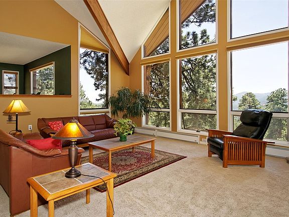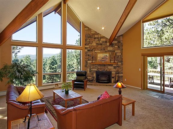 This one of a kind home is a convergence of timber & stone in rustic and refined forms. The quintessential Vail ski lodge design blends seamlessly into the natural landscape. An open concept plan that is bathed in natural light. The great room is highlighted by soaring ceilings, a window wall, and two-story stone fireplace. The cooks' kitchen is complete with built in fridge, granite counters and custom cabinets. A generous master suite is a welcome retreat of luxury and restfulness. A fully finished lower level complete with bed, bath and game room adds to the impressive value. Situated on over ten acres of pines and oak, this lot includes plenty of flat areas for an additional guest house, out building or horses. West Ranch is an exclusive area of unique mountain beauty & seclusion. A gated neighborhood of just 52 homes situated on 1000 acres. Located just 35 minutes from downtown Denver, when the big city beckons you are moments away. Come experience West Ranch & find yourself here.