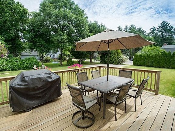 This beautiful 4 bed 2.5 bath colonial is designed for today's living. Located in a quiet tree lined neighborhood just minutes from the highway. Cathedral ceiling great room with fireplace and sliders to the deck. Fully updated kitchen with stainless appliances and island. Entertain in the formal dining room or in the kitchen dining area. Beautiful master suite with sitting area and two huge walk in closets. Master bath has both a spa tub and shower. Laundry is located on the first floor as is the study/office. Perfect time of the year to have dinner on the deck overlooking the parklike grounds.