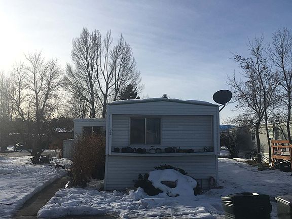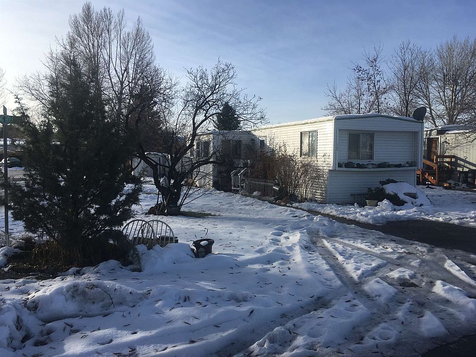 Charming 3 bedroom ; 2 bath mobile home for sale in Covered Wagon Mobile Home Park - affordable living in the heart of Bozeman! The home is a little outdated but with some new paint and flooring it will really shine! It has a great layout consisting of 2 large bedrooms each with an attached bathroom, a smaller third bedroom - perfect for an office, a good size living room with an addition, and a large kitchen. Home is across from the park and has mature trees surrounding (including a plum and an apple tree)! Updates include new vinyl siding and a newer refrigerator, dishwasher, washer & dryer.