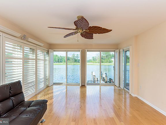 GORGEOUS WATERFONT HOME. This gorgeous 3 bedroom/3 bath home is located on Manklin Creek, in Ocean Pines, offering a wide open unobstructed water view. Endless beauty inside and out, this house carries hardwood floors throughout, windows with plantation shutters, cathedral ceilings, skylights, professional landscaping and sunrooms on both floors. The spacious kitchen was completely remodeled with cherry cabinets, granite countertops, tiled backsplash and stainless-steel appliances. The sunroom, located directly off of the kitchen affords a breath taking waterfront view, enjoying the peaceful serenity provided by the view, or entertain family and friends indoors or out. The washer and dryer are tucked away in the butler's pantry right off the kitchen. There is a bedroom located on the main floor and a full-size bathroom across the hallway that has been tastefully remodeled. The home also features a living room, complete with a gas fireplace on the main level that could be used as a formal dining room that showcases the view from the back of the house. Upstairs has another spacious bedroom, complete with its own private, full-sized bathroom, remodeled with stone counter vanity and tiled flooring. The enormous Primary Suite needs to be seen to be appreciated. With vaulted, high ceilings, crown moldings and a spectacular water view. The space is enhanced with the connected four-season sunroom extending from the primary bedroom. The remodeled, primary bathroom has a soaking, jetted tub, a standup dual headed, glass shower with marble tile and an oversized double vanity with granite countertops. An added bonus to the primary closet's size, is the large cedar closet allowing for extra storage. A home office in the primary suite as an added bonus. This home has many amenities, such as a retractable awning, Anderson windows and doors, a hot tub, a boat lift and a jet ski lift, which all make this home even more attractive. The HVAC and water heater have both been replaced within the last 6 years. This home has been meticulously taken care of. Go crabbing, kayaking, paddle boarding or jump on your boat right from your very own backyard. This home doesn't disappoint.