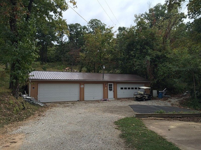 ~1.1 acres of land Zoned B-2 Commercial. On Lake of the Ozarks. Has boat ramp, 5 car garage with a double bay workshop thats finished and air conditioned, and 5 covered boat slips on docks next to it: four 24ft and one 30ft. Would make great boat rental and repair set up. Price is firm.Owner financing considered with 15% down. Trades considered. Land has 3 entrances. Have new photos I would be glad to send you!