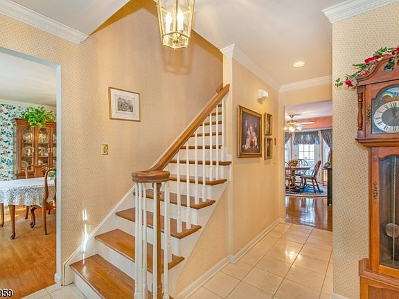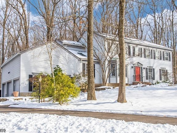 Fantastic cul de sac location within Nestlingwood. Public water, sewer & gas, backs to town land for privacy. Oversized colonial includes office and bonus room on 1st floor, vaulted ceilings, eat- in kitchen with center island, first floor laundry, newer Trex deck, newer roof and skylights, newer garage doors, 2 zones/units of HVAC and newer hot water heater, all appliances included and less than 5 years old. Recent Nutone whole house intercom system with CD player and speakers throughout, Primary bedroom features sitting room and full bath with jetted tub and stall shower, 3 additional spacious bedrooms and main bath with double vanity. Huge unfinished basement has possibilities. Excellent West Morris High School district, minutes to shopping, theater, dining. 36' Wells Cargo trailer w/title included!