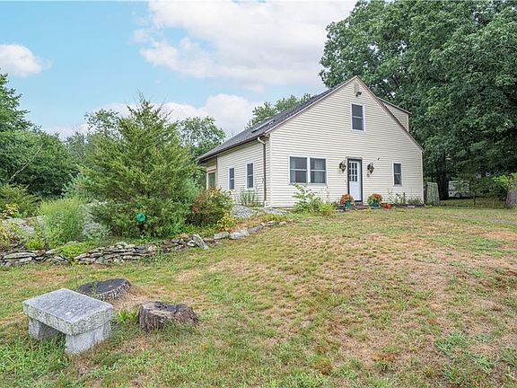 Spacious Rustic Style Cape on over 1 acre Lot. Open floor Plan Kitchen Penninsula Open to Dining Room with wide Plank Flooring. Living room open to Above. 1 st Floor Den with French door to Rear Wood Deck. 1st floor bathroom as well as a main bath upstairs too. 2 Large Bedrooms Upstairs & Storage Galore!!! Vinyl sided, Replacement windows, 15 Year old 1 layer roof. Propane Heat , 3 year old well pump & tank... Non Potable Water ( Laundry, dishes, bath ) Water softner. Home is being sold as is.
