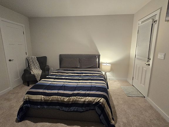 A fully furnished basement room that is it has it own new queen size bed and matress with bedside lamp, single couch and a dedicated work station. It also has a private bathroom, closet, It's own entrance door. The room also has fridge, microwave , electric kettle. basic amenities are also included like laundry and access to the kitchen and wifi. The whole house is newly built in April 2025 NO SMOKING NO VAPING NO PETS NO PARTY Free parking but please do not park on the driveway