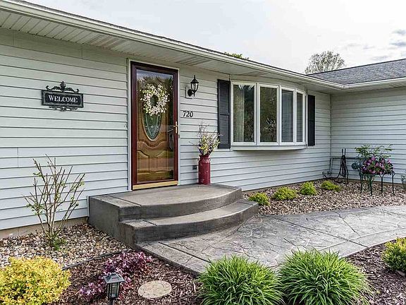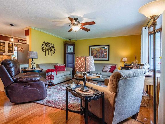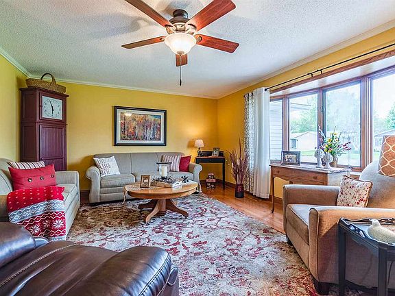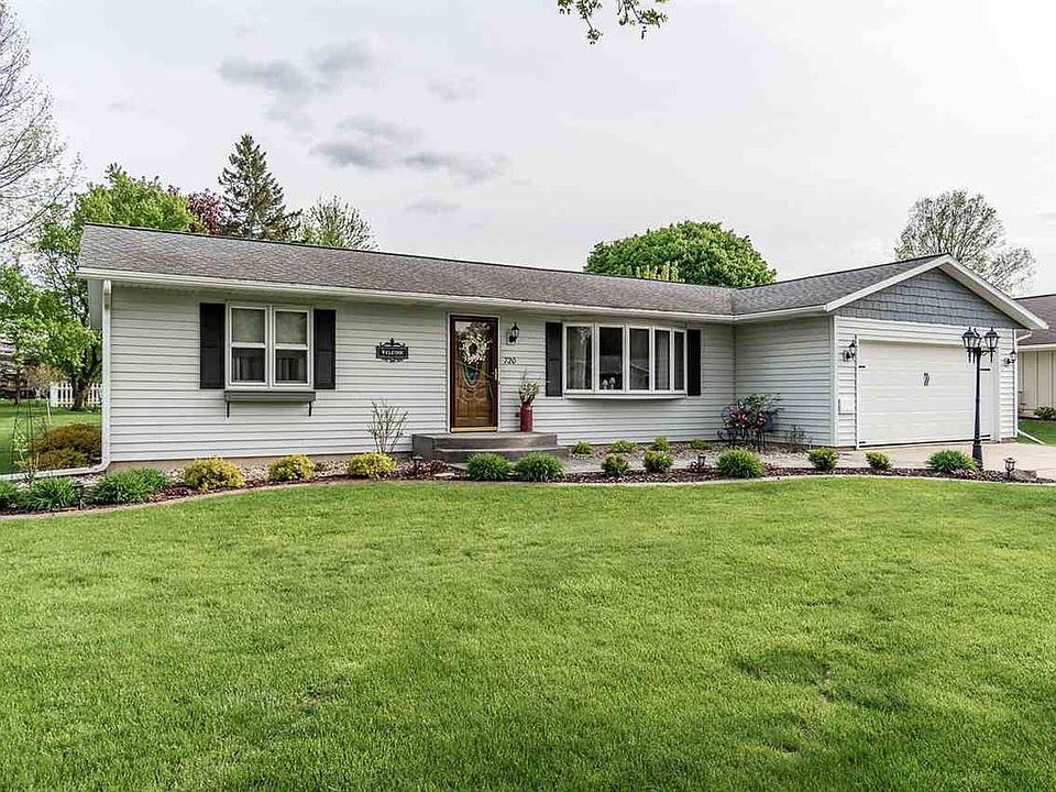 Meticulously maintained Ranch home close to schools, shopping, churches & more! Main floor features a bright, cheery eat-in kitchen w/quartz counters, stainless appliances, nice cabinet space, large living room, dining room, heated 4 season room w/patio doors to big deck w/pergola, great natural light, skylights, 2 bedrooms, full bath w/walk-in tile shower, 1/2 bath & big mudroom w/laundry off the garage. Lower level has a nice family room w/"Amish" electric fireplace, office, reading nook, 1/2 bath & great storage. Hardwood floors, central vac, gorgeous backyard with 12x6 garden/storage shed. 2 car garage too!