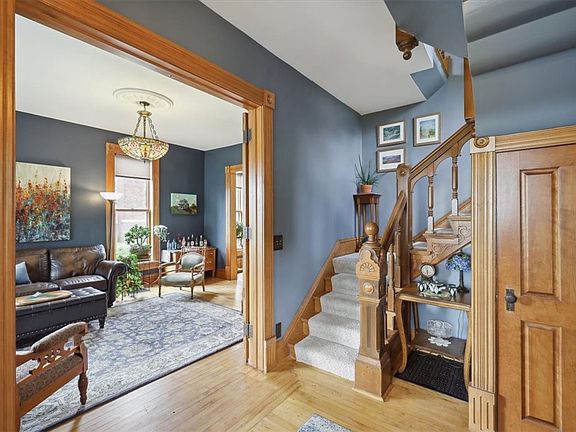Discover serenity and sustainability in this enchanting Victorian home on a double lot boasting a curated perennial garden adorned with native plants, a tranquil shade garden, and a thriving vegetable garden connected by newly laid antique brick paths. Nestled in Sherman Hill, this haven offers an idyllic escape for nature enthusiasts, garden entertaining and garden aficionados alike. This home boasts beautiful woodwork, stained glass windows, and period lighting. A covered front porch with a view of the Iowa State Capitol leads to recently refurbished double front doors with beveled glass that welcome you into a stunning entry hall with ornate staircase. With large doorways between main level rooms, the home feels very open with tons of light from many tall windows. The kitchen has custom oak cabinetry and a newer LG refrigerator, dishwasher & microwave. There is a small bedroom/office on the first floor along with a laundry and ½ bath. Front and back staircases lead upstairs to 3 bedrooms (one of which was recently expanded to include a former hallway, 2 bathrooms (the stunning NW bathroom was recently and totally remodeled), 3 bedrooms, and a 2nd family room. Other updates include but not limited to: roof '19, furnace '18, A/C '23. Other very recent updates: refinished hardwood floors, 7 new Marvin windows, 2 new Larson storm doors, 2 antique side doors just installed, all interior paint, and wrought-iron like styled fencing. A full list of seller updates is available.