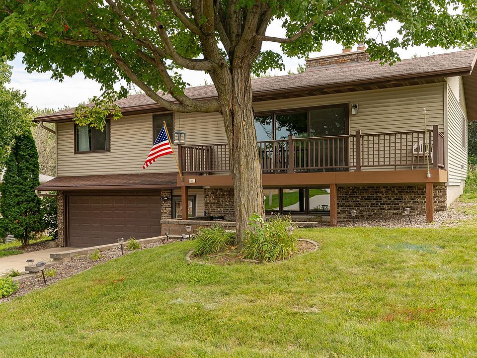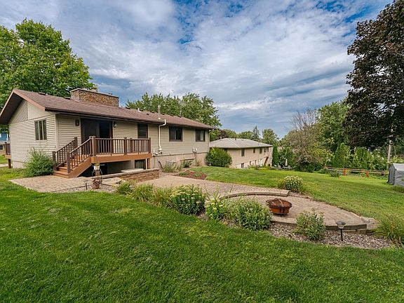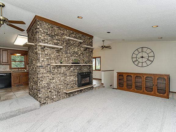 Fresh updates and timeless charm shine in this beautifully maintained walk-out ranch! Enjoy fresh paint, brand-new carpet flooring, and new water heater. The main level features three bedrooms, including a spacious primary with shared access to a large full bath—complete with double sinks, a vanity area, and a linen closet. The inviting living room showcases a stunning floor-to-ceiling brick fireplace that flows into the generous kitchen and dining area, offering ample cabinet space, and additional kitchen counter seating, with access to the deck. Step outside to a private backyard oasis with mature trees, no rear neighbors, and a cozy patio—perfect for evenings by the firepit. The finished lower level includes a bright family room with a gas fireplace, a second full bath with ceramic tile and step-in shower, and a bonus office or craft room or could be a future 4th bedroom with added egress window. Additional features include a heated 2-car garage and a backyard storage shed. Located just 8 minutes from Rochester and close to parks, schools, dining, and shopping—this home is full of character and ready to welcome you!
