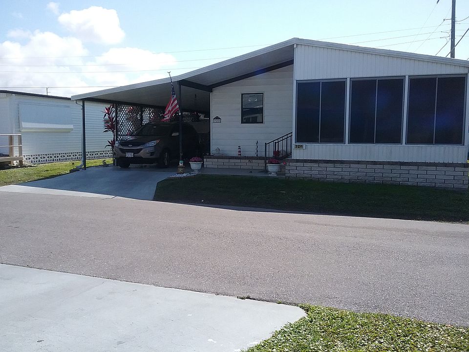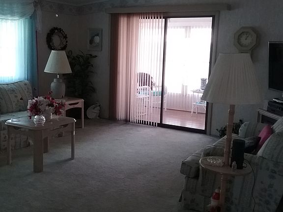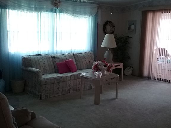 Well maintain home in a 55 + sun community park. Cathedral ceilings, tiled, laminate and carpeted floors. Central air and heat from ceiling. Fully applianced kitchen. House was remodeled 6 years ago. Pet friendly park. We have a pool, shuffle board area, remoded club house, with library, gym, kitchen, pool and card tables. Underneath home has new insulation and moisture free barrier. Roof is great with a roof over. There is a tub and shower in one bathroom and a stand alone shower in the master with 3 sinks and a make up area between sinks. A great buy for $50,000. The 2 queen size bedroom sets stay, and the couch and love seat, end tables and lamps stay, washer and dryer stay and all kitchen appliances stay.
