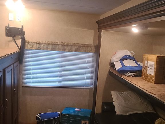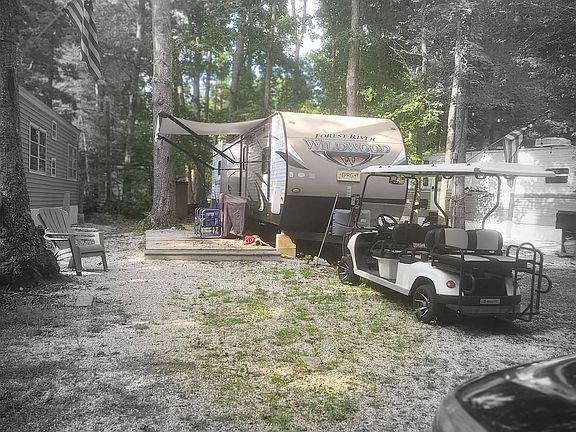 2016 Wildwood by Forest River 31RKIS. Sleeps 8 on a lot with concrete slab, picnic table and fireplace. The lot fee is paid for the rest of the season. This is a great great trailer offering a King-sized bed in the main bedroom with lots of storage for our personal items and tv hook up. The bunkhouse has three single beds to comfortably fit your guests along with hook Up for tv . The main living area has a full kitchen with refrigerator and an island. Booth seating to eat at that goes into a twin bed. The couch flips into a full size bed or enjoy your tv from this vantage point. The full bathroom has a roomy stall shower, sink and toilet. This unit has 3 large slides and an outside kitchen with refrigerator and cabinets. With this trailer comes a two golf cart that seats 6 not 4 like most. This is the golf cart's second season and was $10,000 new. Lets talk about the park which is open April1st to end of October this lot is currently $ 7880(discount for veterans offered) and the owner pays his own electric and cable. the park has a poll and a swimming lake. Activities everyday with themed weekend. Flea markets Adult Bingo, Candy Bingo, games, cart rides, paid paint nights, arts and crafts, Food trucks, something for everyone!