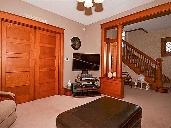 Unique American 4 Square home that is both spacious and charming. The inviting huge covered porch is perfect for sharing with friends and watching the world go by. Upon entering the home you will be greeted by a spacious foyer highlighted with an open stairway and 2 wood pillars leading into the living room. A large formal dining room is accented with a grid ceiling. Antique period lighting, beautiful woodwork and numerous built-ins for storage add to the charm of this home. As you enter each room you will be struck by the architectural details of the period. Hardwood floors under the carpet. Professionally designed landscaping with large trees providing plenty of shade. Close to I-380, downtown, stadiums and shopping; but still a nice quiet neighborhood.