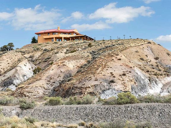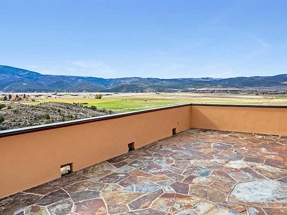 Expansive views in every direction from a deck that wraps around 2 sides of home. Oak plank flooring and stone slate floors. Great room with southerly views and private library/study. Beautiful outside recreational space and 2 car garage with a separate large 1100 sf pull-through garage and shop. Undersized soccer field and basketball court. Access to BLM